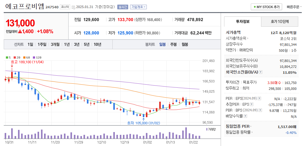 에코프로비엠 주가 심층 분석: 2차전지의 핵심, 투자 매력은?