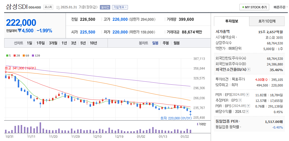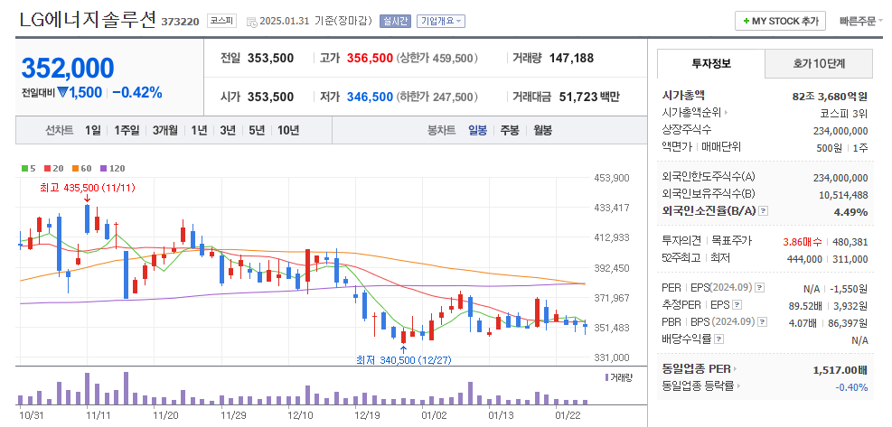 LG에너지솔루션 주가 정보 (2025년 1월 14일 기준)